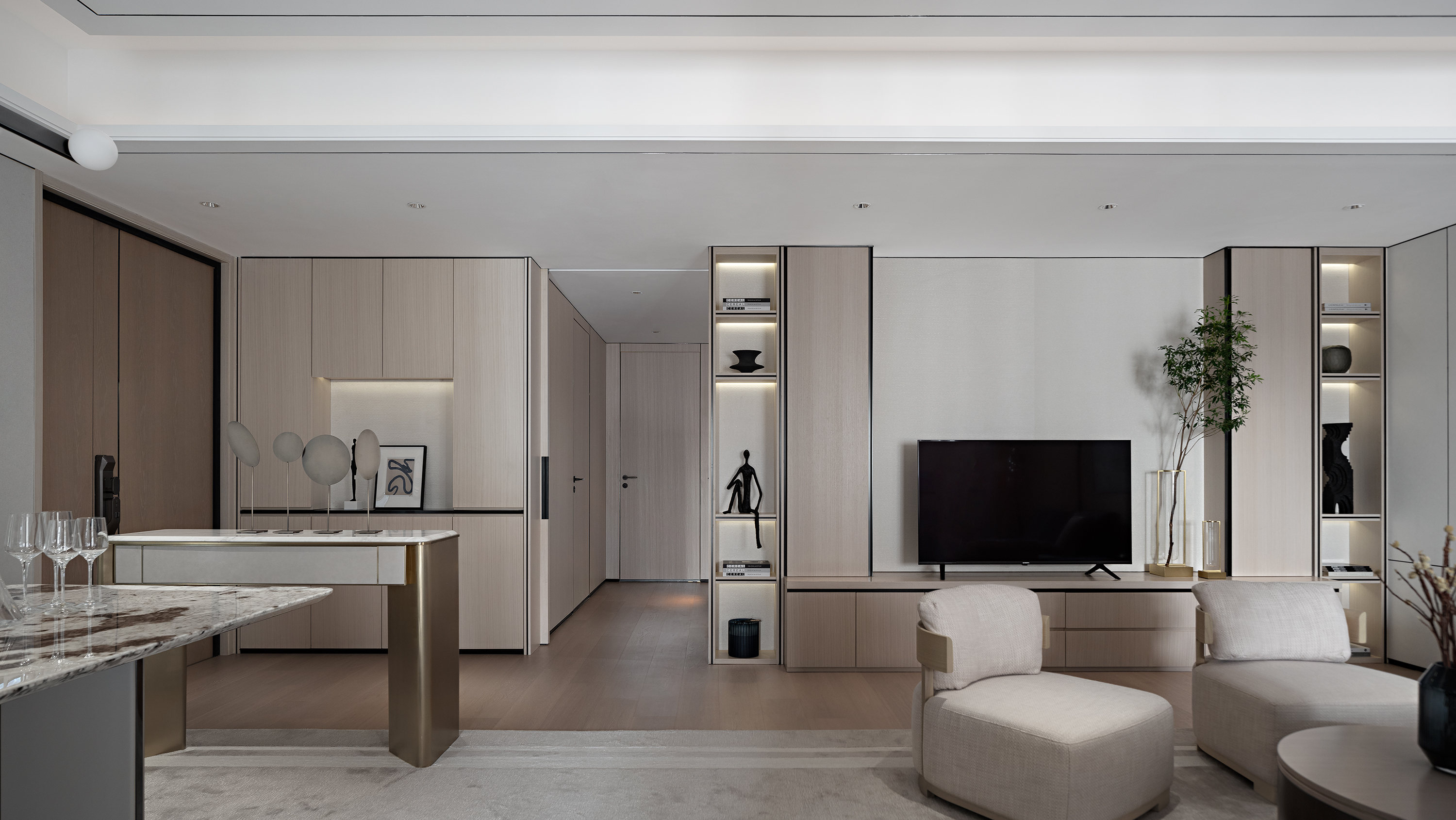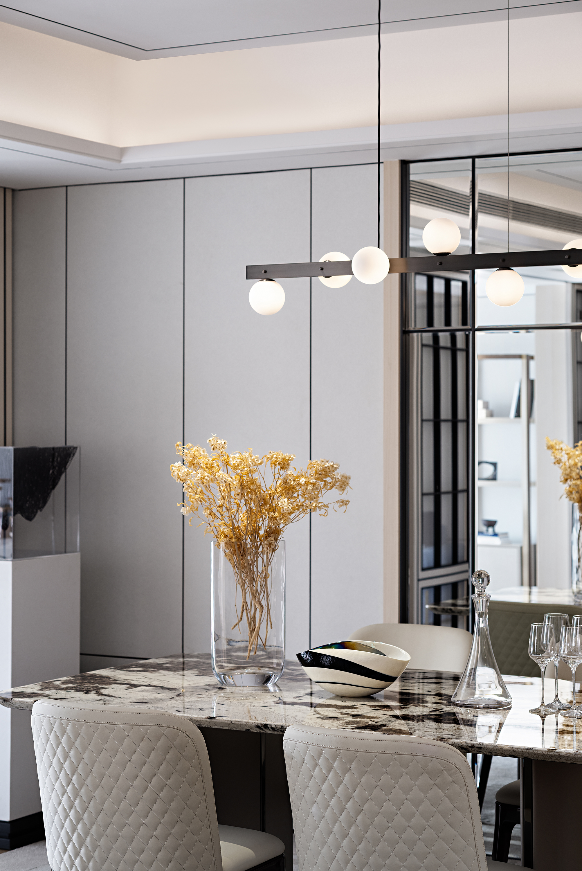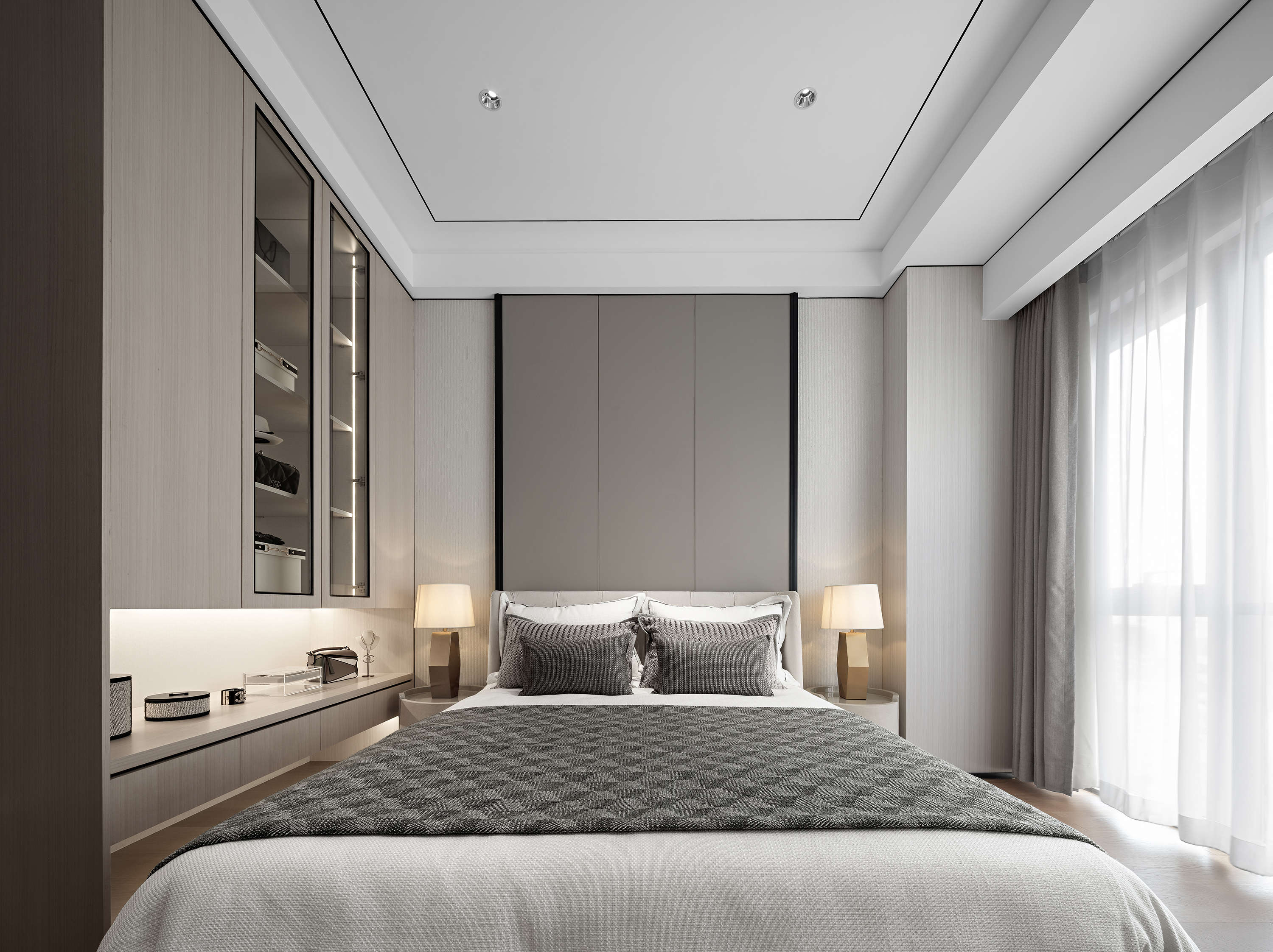 Simplicity is the Ultimate Sophistication Incorporates Paris high-end fashion elements and chic vibe into this 1500 sq. ft. modern apartment. Abandoning the stereotypical concept of exaggerated French carvings and curved lines, we creates the relaxed and chic ambience by the combination of simplicity, comfort and elegance.